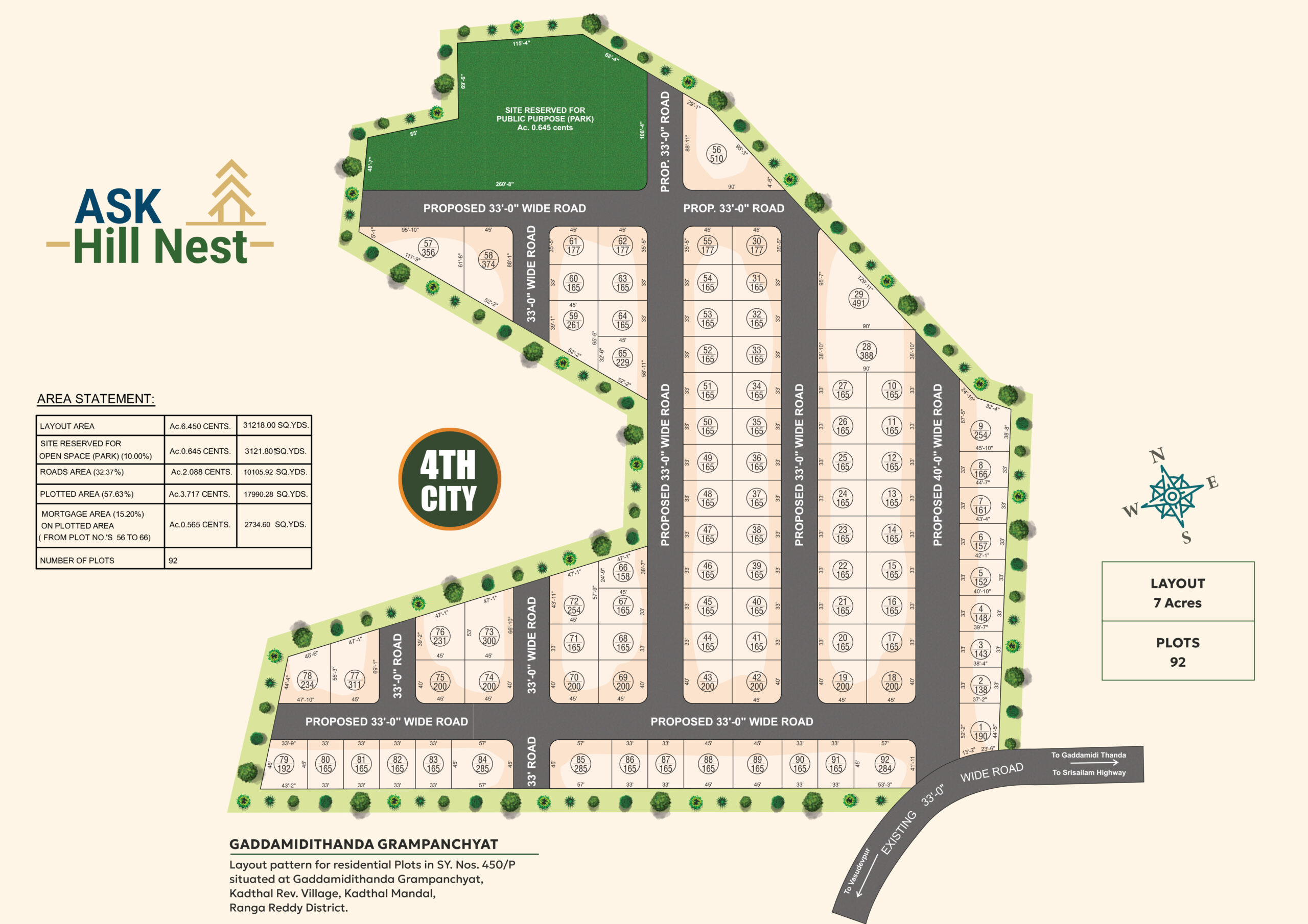 Welcome to ASK Hill Nest — an exclusive plotted development spread across 7 acres, offering 92 premium residential plots designed for a secure, peaceful, and future-ready lifestyle.