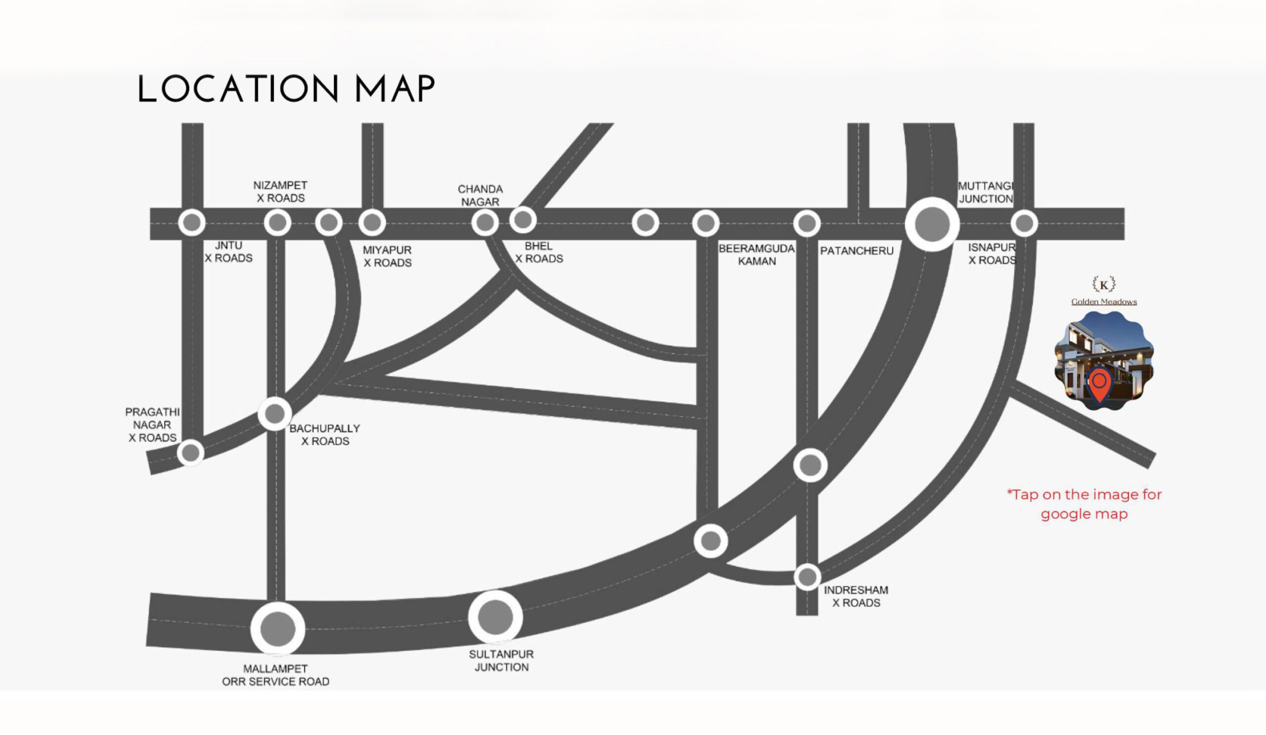 Golden Meadows offers elegantly designed villas equipped with contemporary amenities, including a clubhouse, gymnasium, ample parking, 24/7 security, and power backup. Strategically located near major IT hubs, shopping malls, educational institutions, hospitals, and other key areas of Hyderabad, the community ensures both convenience and connectivity.