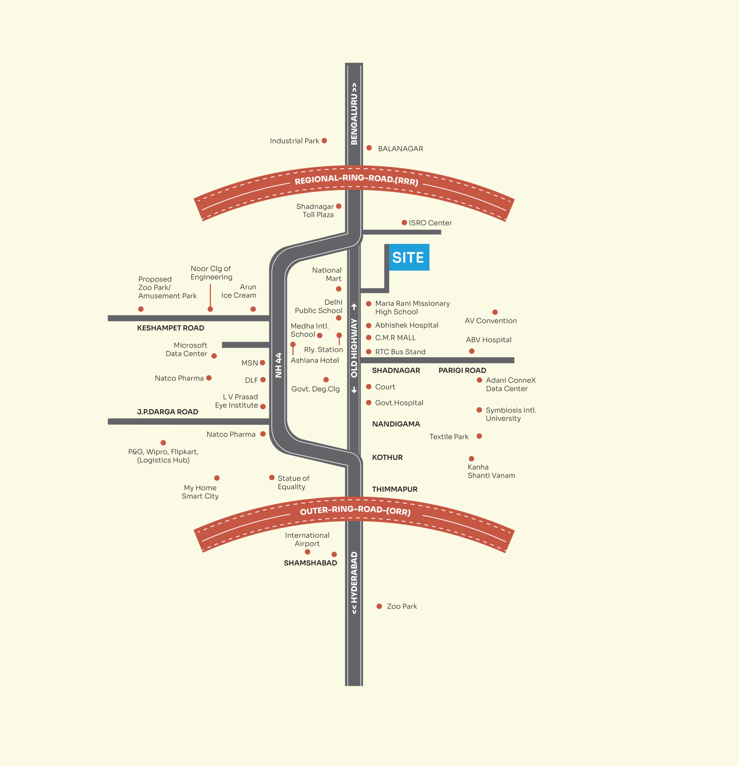 Sree Laxmi Balaji Township is a prestigious 46-acre villa plot community situated in the fast-growing hub of Shadnagar Town. Approved by DTCP and RERA (TLP No: 130/2024/H | TG RERA: P02400009778), this premium project is crafted for families and investors who value luxury, excellent connectivity, and promising growth potential.